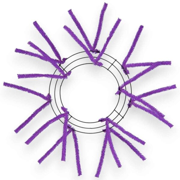 Our Purple Wire Wreath Frame is perfect for your craft projects! The Purple Wire Wreath Frame comes with attached blue pencil tinsel ties to make a finished wreath. The inside hole measures 7 inches, frame end-to-end measures 10 inches and tip-to-tip measures 20 inches. The side bars measure 2.25″. The tinsel ties allow you to easily attach deco mesh and ribbon to the metal wreath frame without the need of pipe cleaners or zip ties. The attached tinsel ties also add a fun pop of color to your wreath or project.FAQs