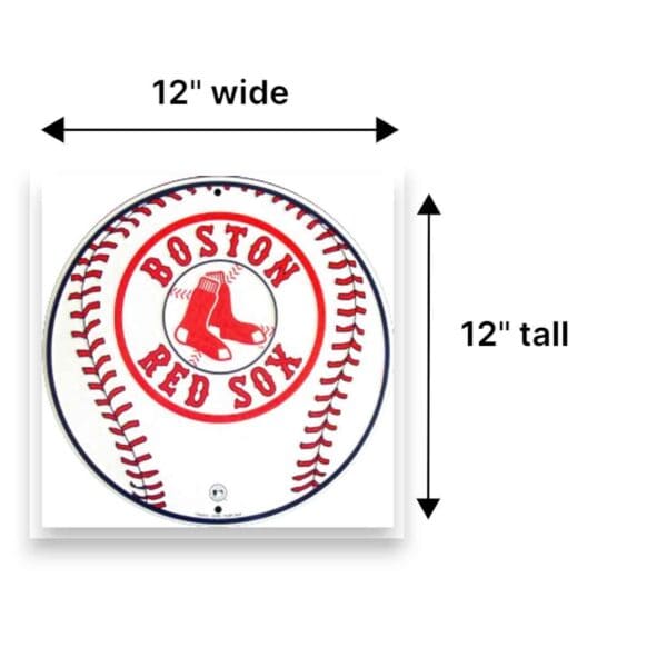 Show your spirit with our Boston Red Sox Round Metal Sign! This officially licensed MLB Boston Red Sox round sign features the team logo and colors on a background designed to look like a baseball. The lightweight 12″ round sign is made of weather resistant embossed aluminum and includes predrilled holes at 6 and 12 o’clock for easy mounting. Made in the USA. Just perfect for your Red Sox baseball wreaths, decor and fan gifts!