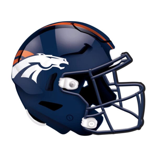 Celebrate football season with this Denver Broncos Helmet Sign, styled to look like an NFL Denver Broncos football helmet. The rustic, distressed finish mimics weathered wood, and the design is printed directly on MDF. Made in the USA, this Denver Broncos Helmet Sign measures 12″ x 10.5″ x .25″ and includes an attached saw-tooth hanger. Use it as a wreath accent sign, front door or wall decor, tailgate decor, or a man cave accent—and a fun gift for any Broncos fan.