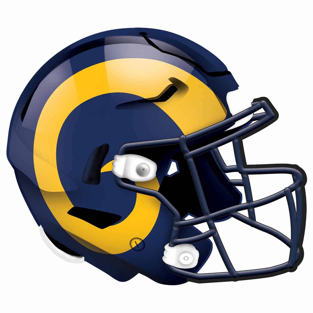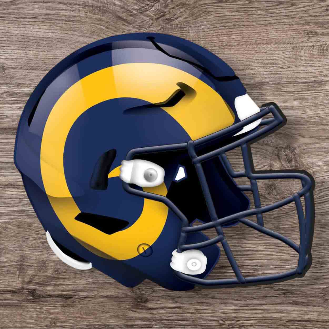 Celebrate the football season with this Los Angeles Rams Helmet Sign! Our shaped sign is decorated to look like a football helmet. It is a distressed design to mimic the look of rustic wood. The sign base is MDF wood and includes an attached sawtooth hanger. This officially licensed NFL Los Angeles Rams Helmet Sign is made in the USA and measures 12″ x 10.5″ x .25″. This football sign can be used as a wreath accent sign, home decor or a gift for that special football fan.FAQs