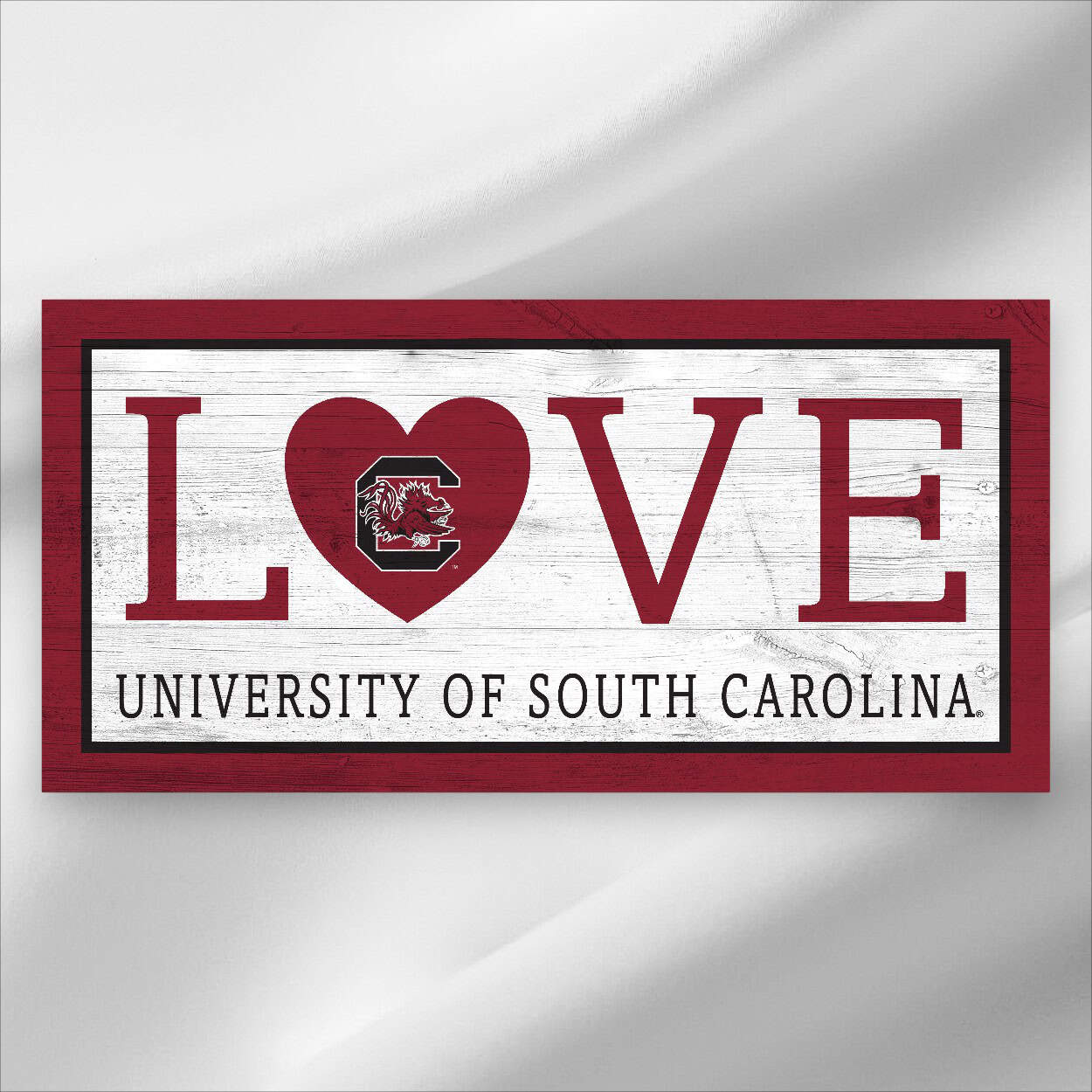 Show your spirit with this officially licensed NCAA Gamecocks Love Sign—a charming accent for wreaths, front doors, and game-day home decor. Featuring the University of South Carolina logo and colors, this design has a rustic distressed wood look, with the image printed directly on MDF for a clean, durable finish. The sign includes an attached twine hanger for easy display. Made in the USA, this Gamecocks Love Sign measures 12″ x 6″. Use it as a wreath accent sign, front door or wall decor, tailgate decor, or a thoughtful gift for any Gamecocks fan.