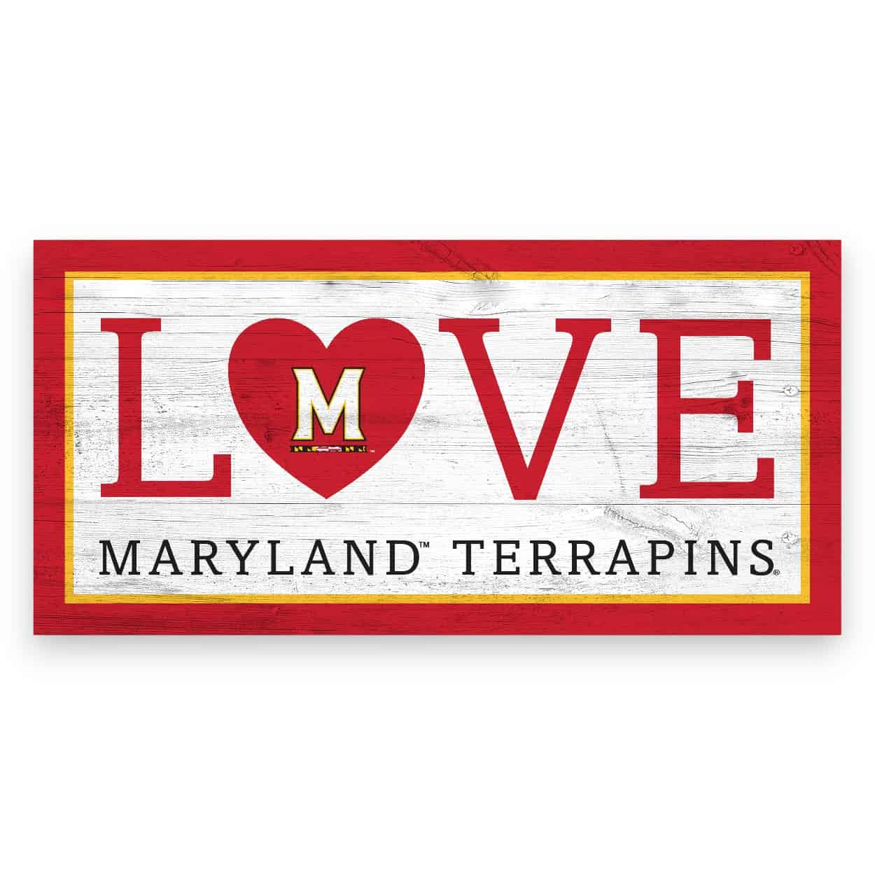 Show your spirit with this officially licensed NCAA Maryland Terrapins Love Sign—a charming accent for wreaths, front doors, and game-day home decor. Featuring the University of Maryland logo and colors, this design has a rustic distressed wood look, with the image printed directly on MDF for a clean, durable finish. The sign includes an attached twine hanger for easy display. Made in the USA, this Maryland Terrapins Love Sign measures 12″ x 6″. Use it as a wreath accent sign, front door or wall decor, tailgate decor, or a thoughtful gift for any Terrapins fan.
