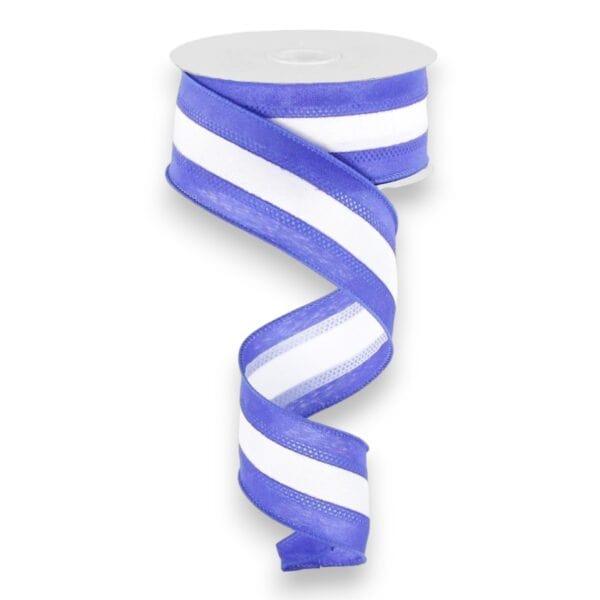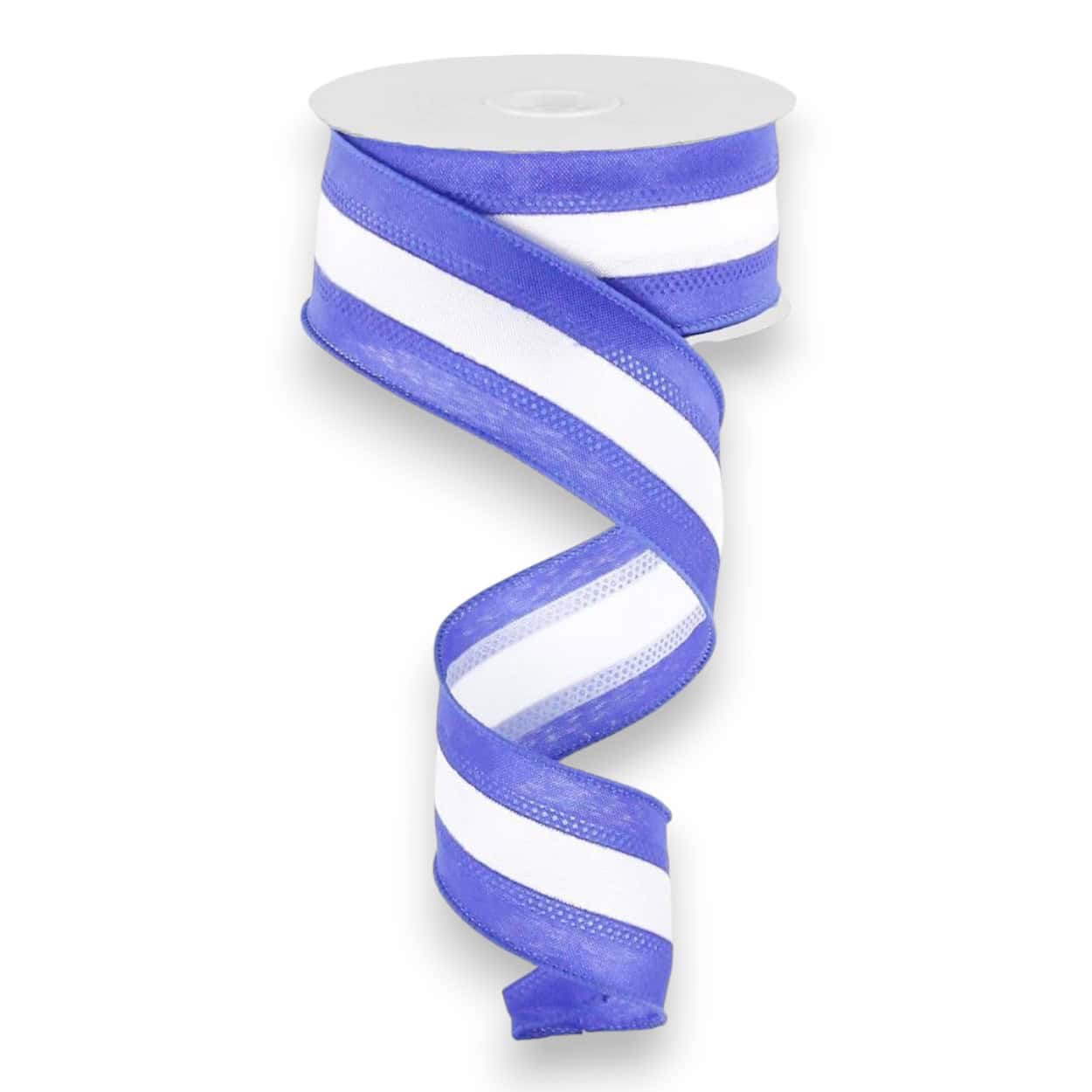 Our blue white stripe ribbon is wonderful for all sorts of ribbon crafts, especially wreath making! This blue and white striped wired ribbon measures 1.5 inches wide by 10 yards for a total of 30 feet. The fabric ribbon is made of satin and has a wired edge. Perfect for UK and Jayhawks wreaths, bows and crafts. Â