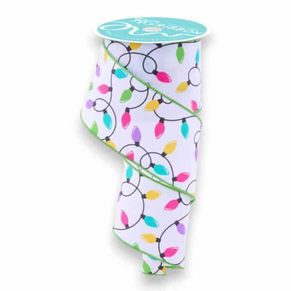 2.5″ Pastel Christmas Lights Ribbon – 10 yards