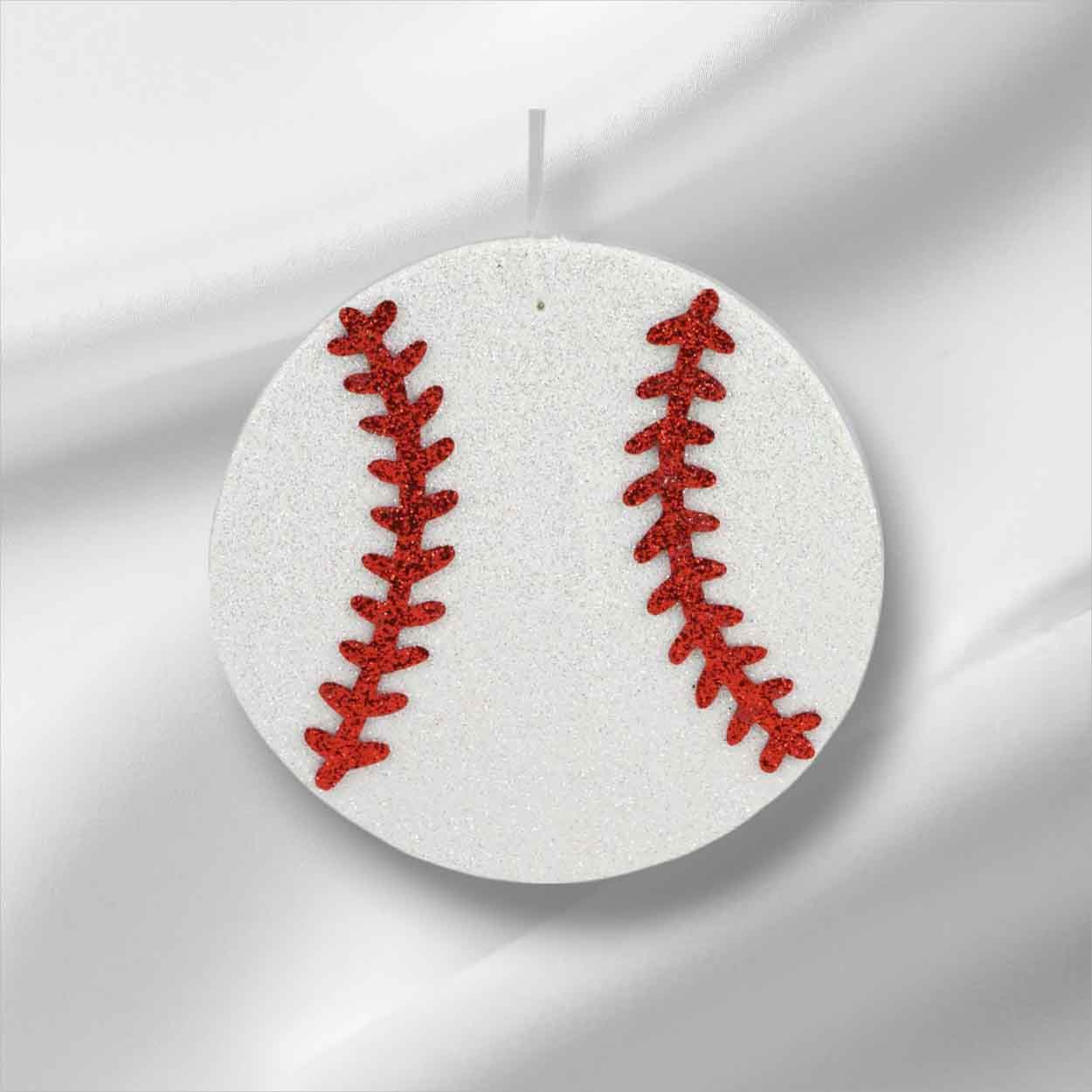 Our Baseball Ornament is wonderful for all sorts of crafts, especially wreath making! The 4″ foam base is covered in red and white glitter. It is includes an attached clear hanger. Just perfect for baseball wreaths, craft projects, your Christmas tree, gift tags or as a gift for that special baseball fan.