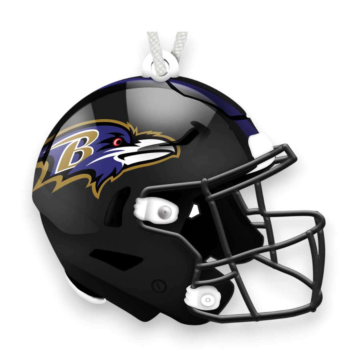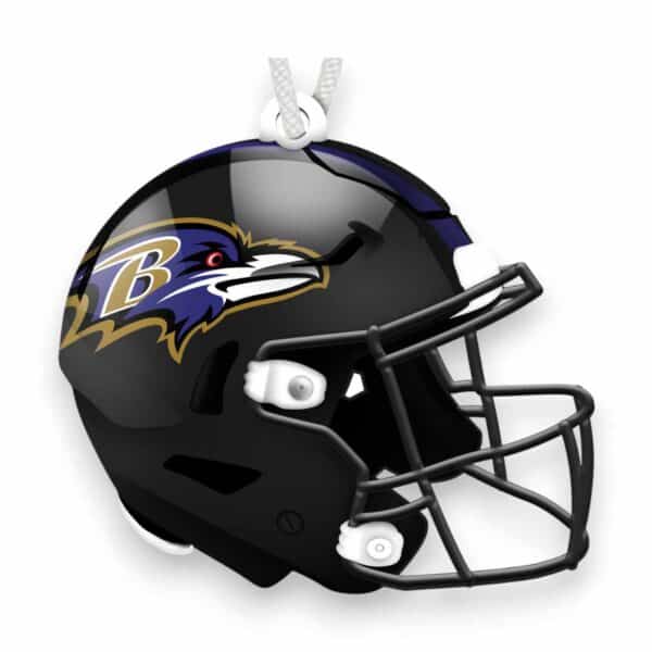 Show your spirit with this officially licensed NFL Baltimore Ravens Flat Helmet Ornament! The football ornament is in the shape of a helmet and decorated with the team logo and colors. This is a distressed design to mimic the look of rustic wood. The design is printed directly on MDF wood on the front side only, while the back side is bare wood. There is a small hole at the top for hanging. This Baltimore Ravens Flat Helmet Ornament is made in the USA and measures 4″ x 4″ x .25″. Just perfect as a wreath accent sign, sports craft supply, gift tag, tree ornament or a gift for that special football fan.FAQs