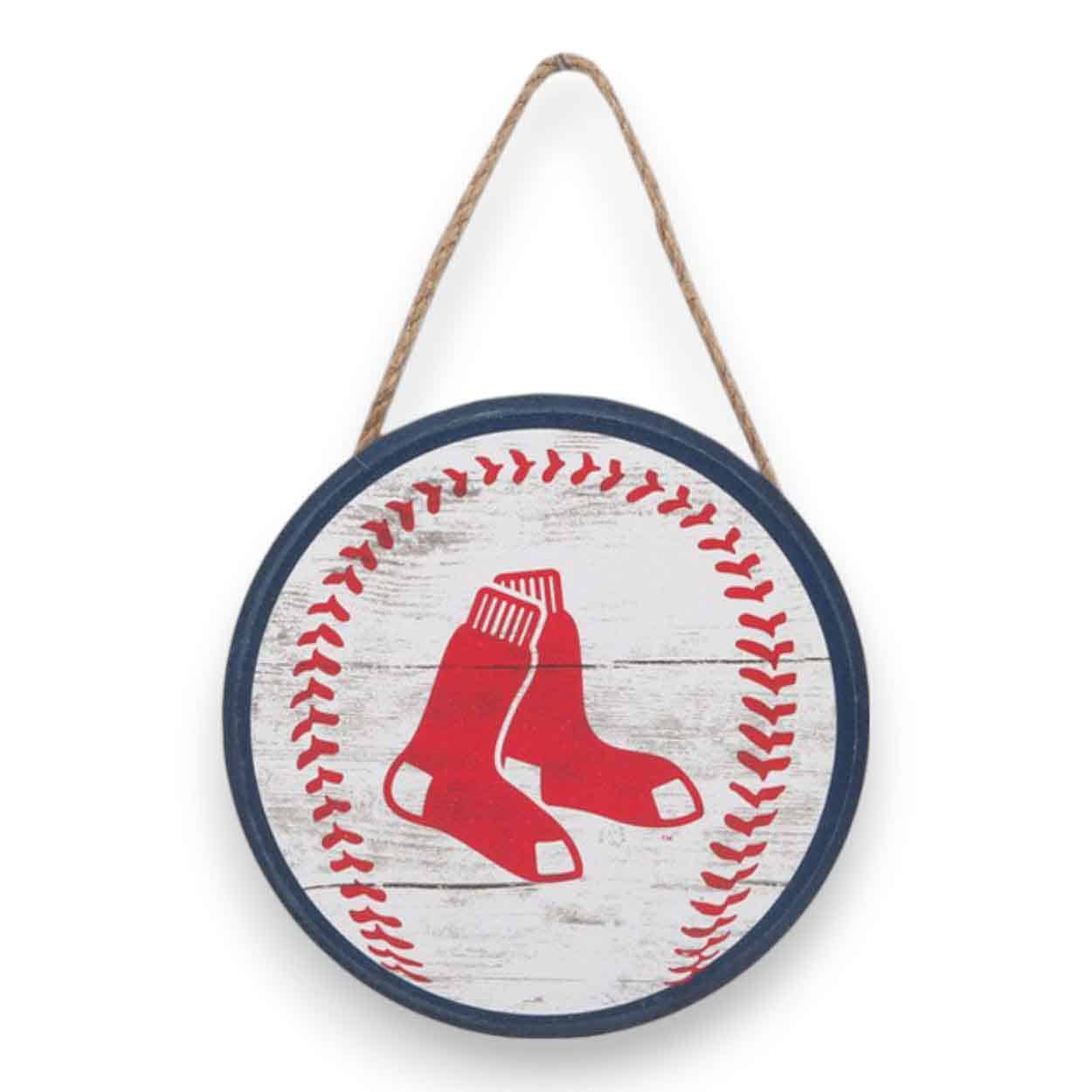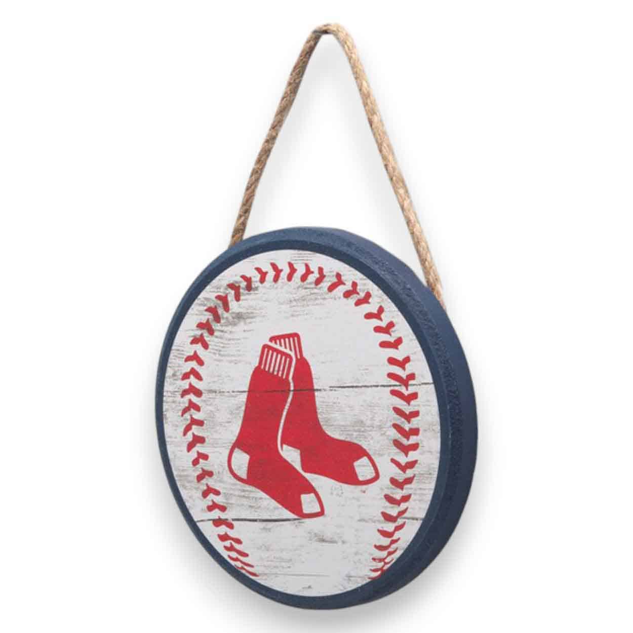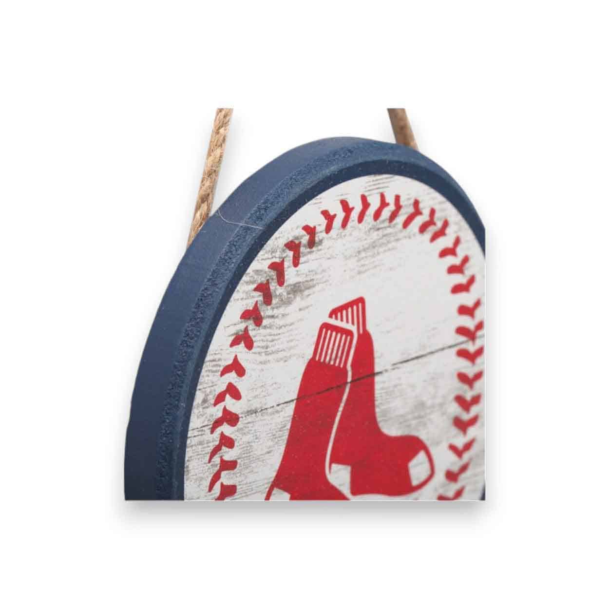 Cheer on your team with our Boston Red Sox Ornament! This officially licensed MLB ornament features the team logo and colors in a distressed design. The Christmas ornament measures 4″ W X 4″ H X 0.375″ D and is made in the USA. It is made of wood and features an attached twine hanger. The design shown in on the front of the ornament, while the back of the ornament is plain wood. This Boston Red Sox Baseball Ornament is perfect for wreaths, Christmas trees, home decor and gifts for that special MLB Red Sox fan.FAQs