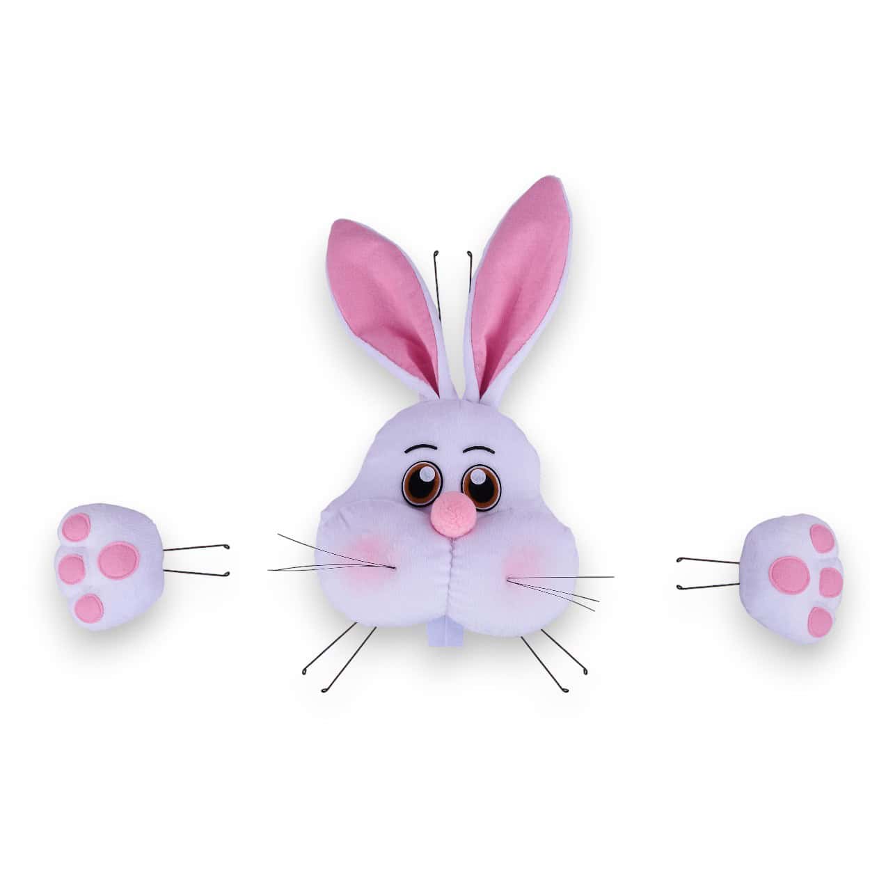 Our Bunny Wreath Attachment Kit is too cute! This 3 piece fabric wreath kit features a head and 2 paws made of faux fur. The bunny head measures 17″ High By 10″ Long and has bendable ears. The paws measure 5″ Long By 4.5″ High. The pieces include attached wires for easy crafting. Just perfect for your Easter wreath.