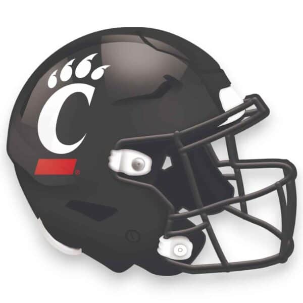 Celebrate the football season with this Cincinnati Football Helmet Sign! Our shaped sign is decorated to look like a Tennessee Vols football helmet. It is a distressed design to mimic the look of rustic wood. The sign base is MDF wood and includes an attached sawtooth hanger. This officially licensed NCAA Cincinnati Football Helmet Sign is made in the USA and measures 12″ x 10.5″ x .25″. This football sign can be used as a wreath accent sign, home decor or a gift for that Tennessee football fan.FAQs