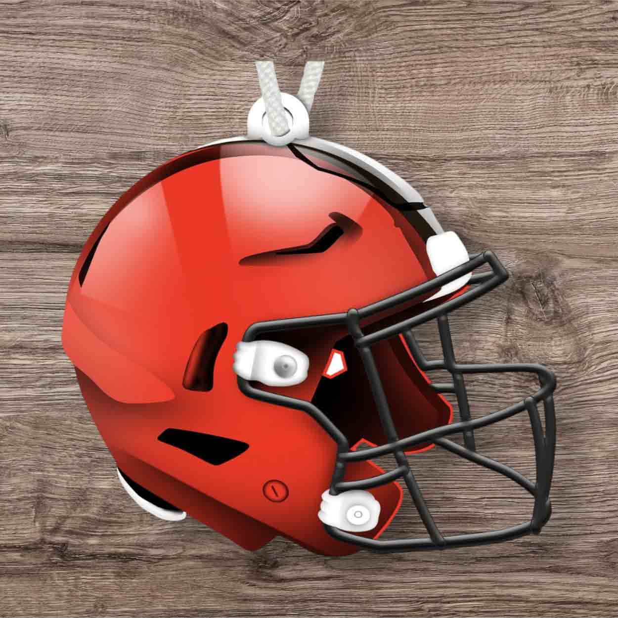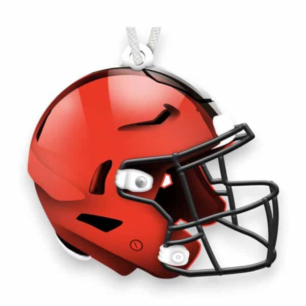 Show your spirit with this officially licensed NFL Cleveland Browns Flat Helmet Ornament! The football ornament is in the shape of a helmet and decorated with the team logo and colors. This is a distressed design to mimic the look of rustic wood. The design is printed directly on MDF wood on the front side only, while the back side is bare wood. There is a small hole at the top for hanging. This Cleveland Browns Flat Helmet Ornament is made in the USA and measures 4″ x 4″ x .25″. Just perfect as a wreath accent sign, sports craft supply, gift tag, tree ornament or a gift for that special football fan.FAQs