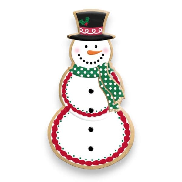 Our Cookie Snowman Sign looks good enough to eat! This sign features a snowman decorated like a Christmas cookie. The sign is made of weather resistant aluminum and includes a saw-tooth hanger. It measures 12″ high. This snowman sign is perfect for wreaths and holiday decorations!