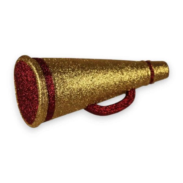 Give your craft project a spirited touch with our Crimson and Gold Megaphone Ornament! Featuring eye-catching metallic glitter, this ornament measures 6″ long by 2.75″ wide. The Crimson and Gold Megaphone Ornament is made of glitter covered plastic and includes a convenient loop for easy hanging or attachment. Whether you’re dressing up a wreath, sprucing up a sports-themed craft, or adding a pop of cheer to your party decorations or holiday tree, its bold design and team-inspired colors are sure to make a standout statement.FAQs