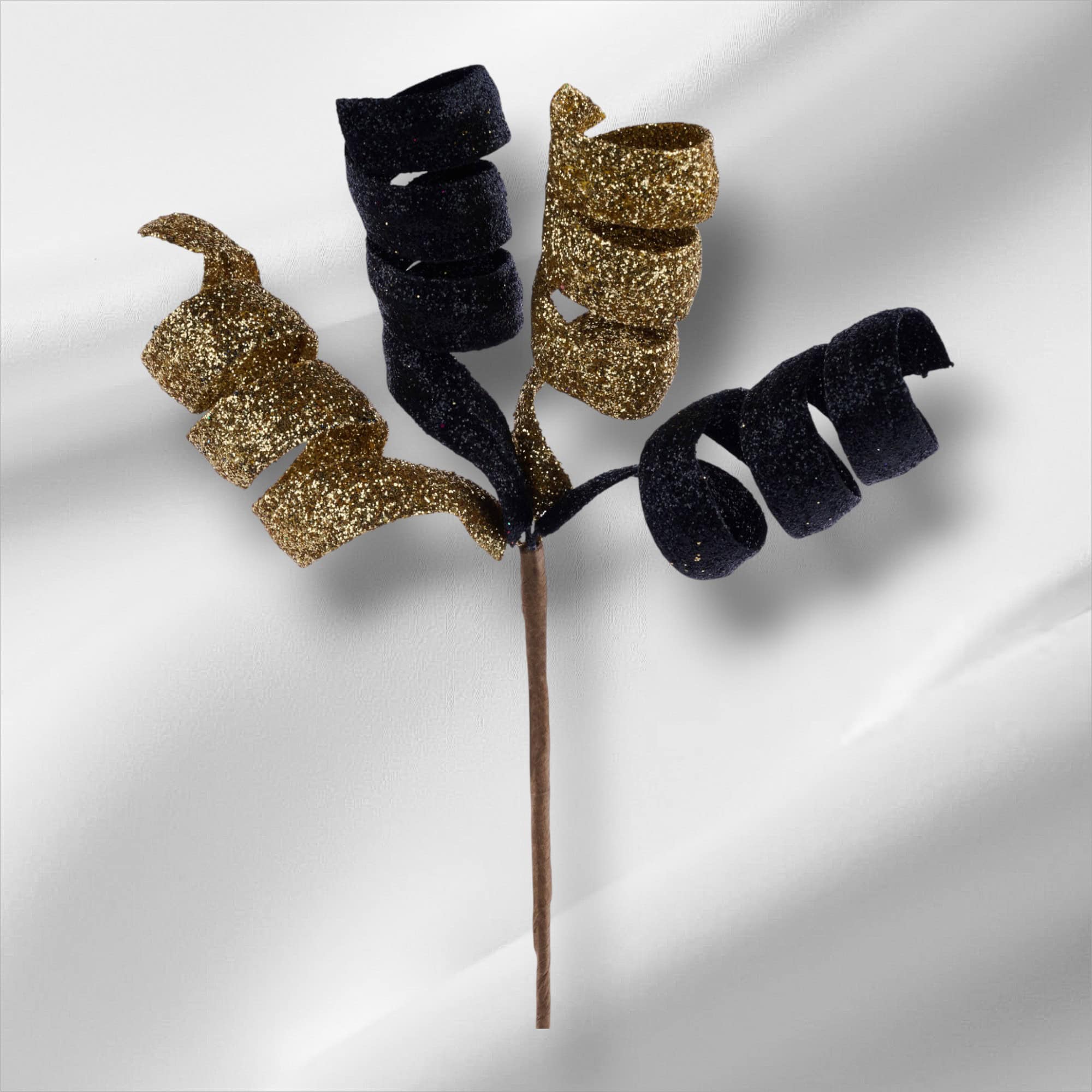 Add a playful pop of color and texture to your next project with our Gold Black Curly Pick! This charming decorative accent is perfect for wreaths, floral arrangements, centerpieces, and a wide range of craft projects. Measuring 11 inches in length, our gold black curly pick features four individual curls made of lightweight foam and coated in shimmering gold black glitter for a festive, eye-catching look. The wired stem is wrapped in brown paper, making it easy to bend, shape, and secure wherever you need a touch of flair. Whether you’re crafting for the holidays, a special event, or simply adding some sparkle to your décor, this glitterly curly pick is a fun and versatile choice.