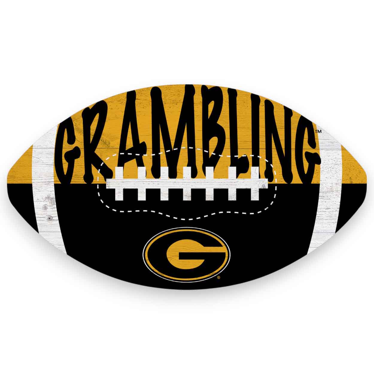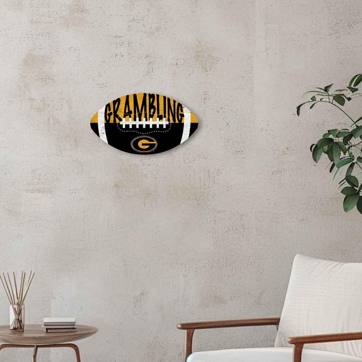 Our Grambling Color Football Sign is decorated with the school logo and colors. This officially licensed NCAA Grambling Color Football Sign is a distressed design to mimic the look of rustic wood. The image is printed directly on MDF wood. The sign includes an attached sawtooth hanger. This football sign is made in the USA and measures 12″ x 7″ x .25″. Just perfect for a wreath sign, home decor or a gift for that special football fan.FAQs
