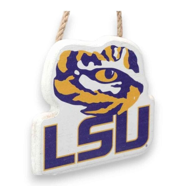 Our LSU Logo Ornament is wonderful for all sorts of crafts, especially wreath making! This LSU Ornament is made of wood and measures 3.75″ W X 3.13″ H X 0.25″ D. It includes an attached twine rope for easy hanging. The design is on the front side only. This ornament is perfect for wreaths, craft projects, your Christmas tree, gift tags or as a gift for that special LSU football fan.FAQs