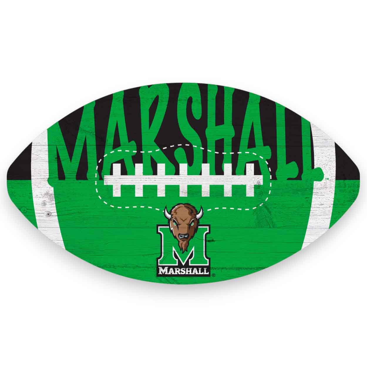 Our Marshall Color Football Sign is decorated with the school logo and colors. This officially licensed NCAA Marshall Color Football Sign is a distressed design to mimic the look of rustic wood. The image is printed directly on MDF wood. The sign includes an attached sawtooth hanger. This football sign is made in the USA and measures 12″ x 7″ x .25″. Just perfect for a wreath sign, home decor or a gift for that special football fan.FAQs