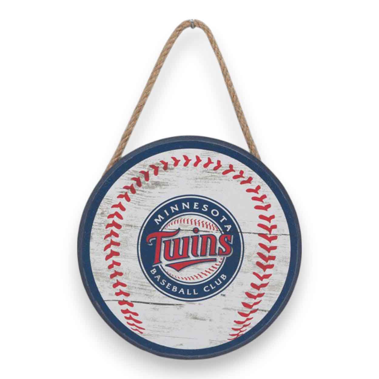 Cheer on your team with our Minnesota Twins Ornament! This officially licensed MLB ornament features the team logo and colors in a distressed design. The Christmas ornament measures 4″ W X 4″ H X 0.375″ D and is made in the USA. It is made of wood and features an attached twine hanger. The design shown in on the front of the ornament, while the back of the ornament is plain wood. This Minnesota Twins Baseball Ornament is perfect for wreaths, Christmas trees, home decor and gifts for that special MLB Twins fan.FAQs