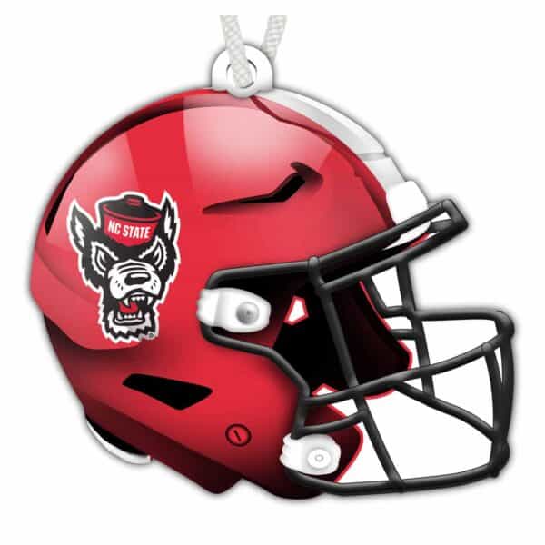 Show your spirit with the NC State Flat Helmet Ornament, an officially licensed NCAA helmet-shaped piece featuring team colors and a distressed, rustic wood-look design. Printed directly on MDF wood, it’s made in the USA and measures 4″ x 4″ x 0.25″, with the design on the front side only and a bare wood back. Perfect as a wreath accent sign, sports craft supply, gift tag, tree ornament, or a gift for any football fan.