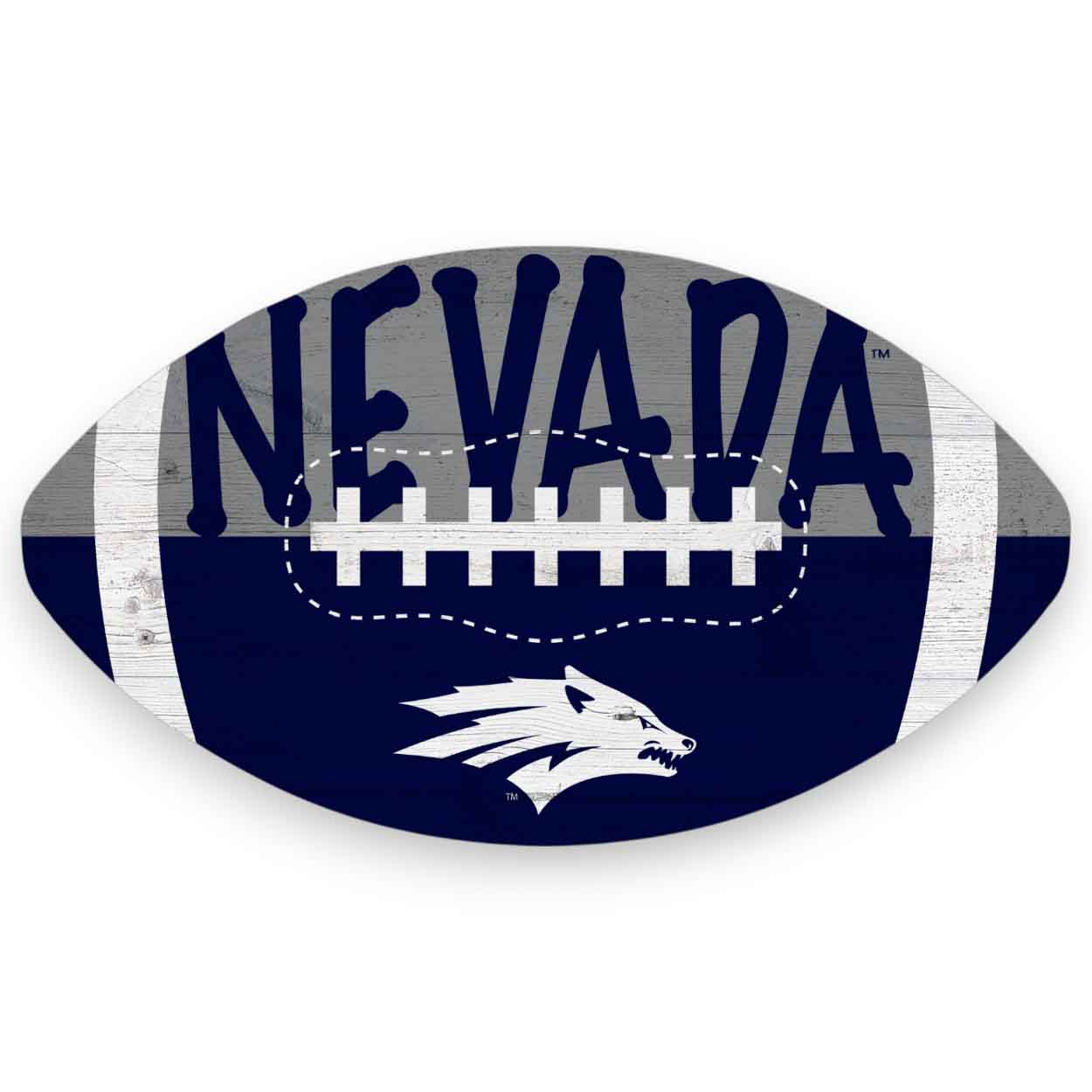 Our Nevada Color Football Sign is decorated with the school logo and colors. This officially licensed NCAA Nevada Color Football Sign is a distressed design to mimic the look of rustic wood. The image is printed directly on MDF wood. The sign includes an attached sawtooth hanger. This football sign is made in the USA and measures 12″ x 7″ x .25″. Just perfect for a wreath sign, home decor or a gift for that special football fan.FAQs