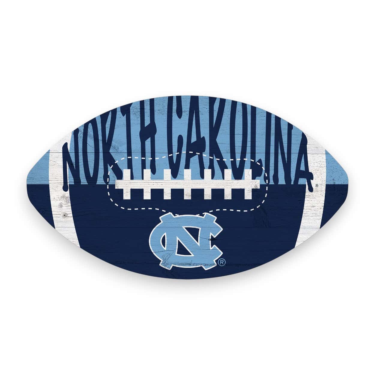 Celebrate game day with this officially licensed NCAA North Carolina Color Football Sign, featuring a football design in the University of North Carolina logo and team colors. The rustic distressed finish gives it a weathered wood look, and the image is printed directly on durable MDF. Made in the USA, this North Carolina Color Football Sign measures 12″ x 7″ x 0.25″. Use it as a wreath accent sign, front door or wall decor, tailgate decor, or a fun gift for any Tar Heels fan.