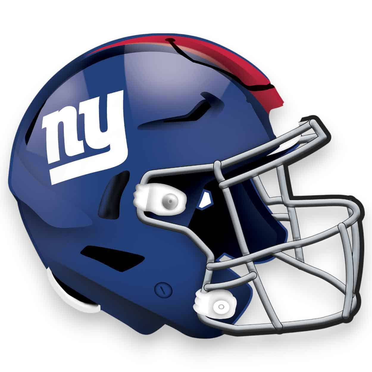 Celebrate the football season with this NY Giants Helmet Sign! Our shaped sign is decorated to look like a football helmet. It is a distressed design to mimic the look of rustic wood. The sign base is MDF wood and includes an attached sawtooth hanger. This officially licensed NFL NY Giants Helmet Sign is made in the USA and measures 12″ x 10.5″ x .25″. This football sign can be used as a wreath accent sign, home decor or a gift for that special football fan.FAQs