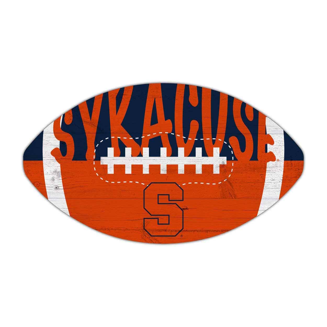 Our Syracuse Color Football Sign is decorated with the school logo and colors. This officially licensed NCAA Syracuse Color Football Sign is a distressed design to mimic the look of rustic wood. The image is printed directly on MDF wood. The sign includes an attached sawtooth hanger. This football sign is made in the USA and measures 12″ x 7″ x .25″. Just perfect for a wreath sign, home decor or a gift for that special football fan.FAQs