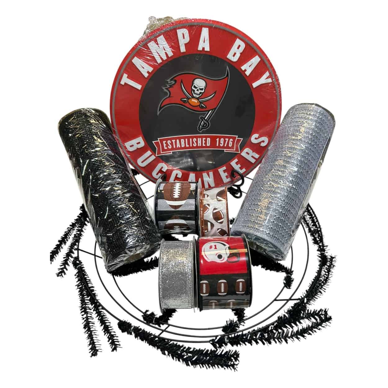 Show your team spirit with our Tampa Bay Buccaneers Wreath Kit. This coordinated wreath kit includes matching ribbon, deco mesh, a wire wreath frame, and a Tampa Bay Buccaneers sign to help you create a bold 24″ team-themed wreath without the guesswork. The bundle contents are fixed and pre-packed for convenience, value, and faster shipping.