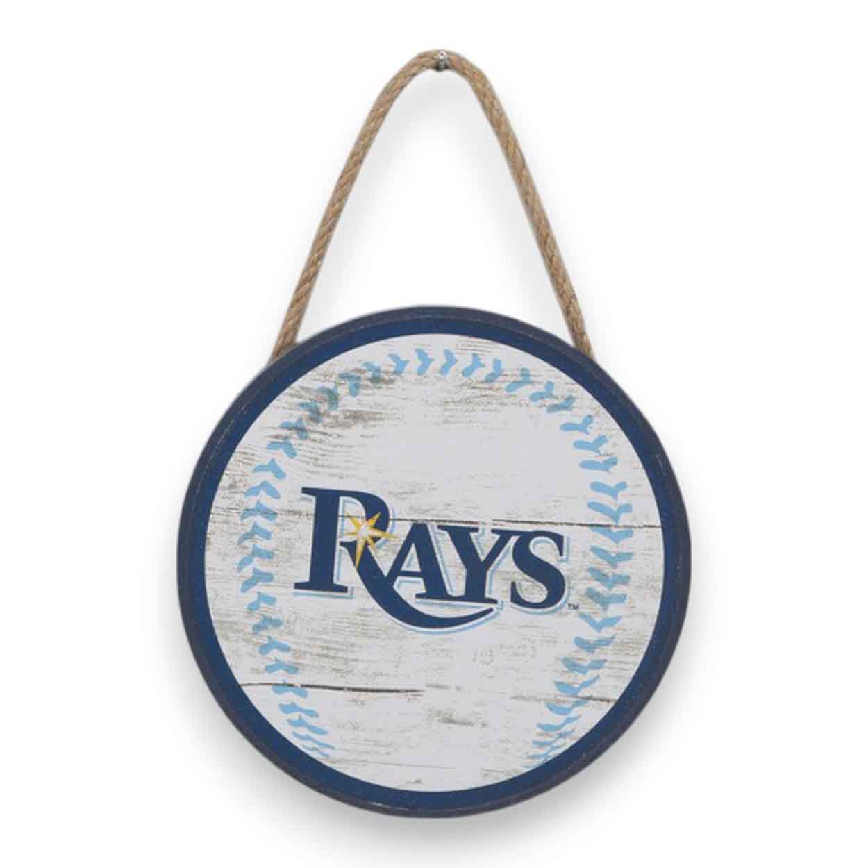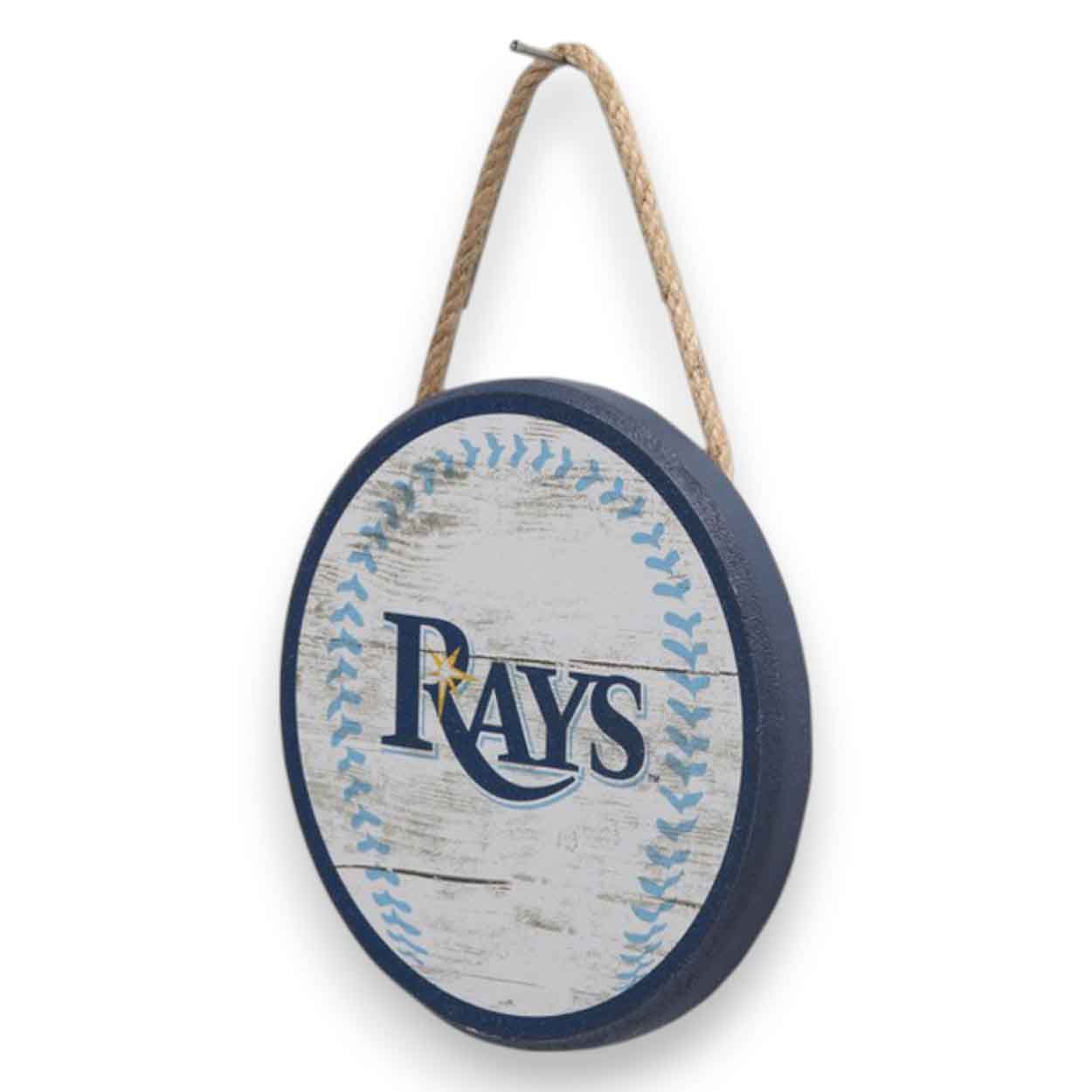 Cheer on your team with our Tampa Bay Rays Ornament! This officially licensed MLB ornament features the team logo and colors in a distressed design. The Christmas ornament measures 4″ W X 4″ H X 0.375″ D and is made in the USA. It is made of wood and features an attached twine hanger. The design shown in on the front of the ornament, while the back of the ornament is plain wood. This Tampa Bay Rays Baseball Ornament is perfect for wreaths, Christmas trees, home decor and gifts for that special MLB Rays fan.FAQs