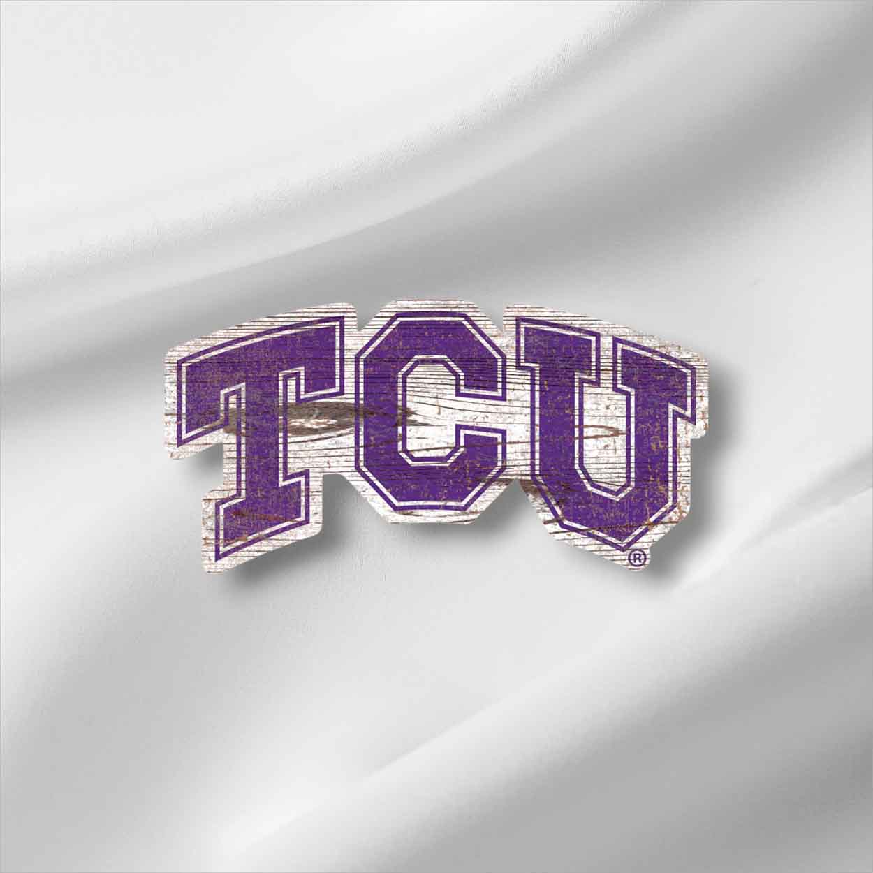 Show your spirit with this officially licensed NCAA TCU Logo Sign! The shaped sign is decorated to look like the school logo. It is a distressed design to mimic the look of rustic wood. The image is printed onto MDF wood and includes an attached wire hanger. This TCU Logo Sign is made in the USA and measures 8″ x 8″ x 0.25″. The collegiate sign can be used as a wreath accent sign, home decor or a gift for that special fan.FAQs