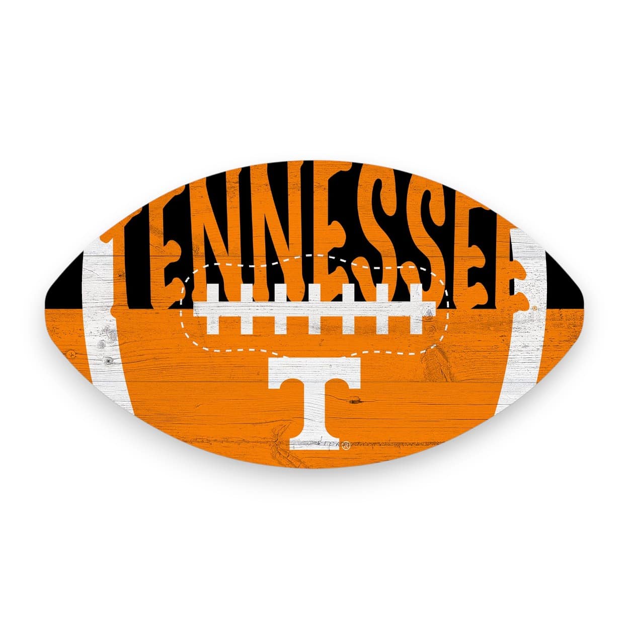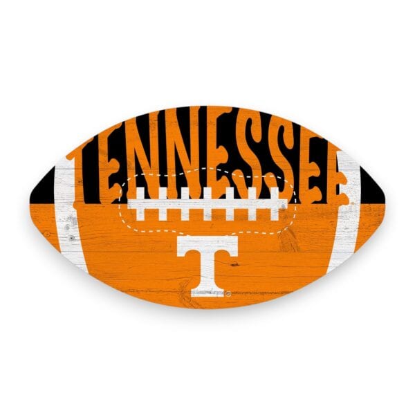 Celebrate game day with this officially licensed NCAA Tennessee Vols Color Football Sign, featuring a football design in the University of Tennessee logo and team colors. The rustic distressed finish gives it a weathered wood look, and the image is printed directly on durable MDF. Made in the USA, this Tennessee Vols Color Football Sign measures 12″ x 7″ x 0.25″. Use it as a wreath accent sign, front door or wall decor, tailgate decor, or a fun gift for any Volunteers fan.