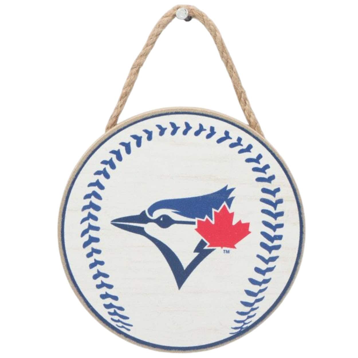 Cheer on your team with our Toronto Blue Jays Ornament ! This officially licensed MLB ornament features the team logo and colors in a distressed design. The Christmas ornament measures 4″ W X 4″ H X 0.375″ D and is made in the USA. It is made of wood and features an attached twine hanger. The design shown in on the front of the ornament, while the back of the ornament is plain wood. This Toronto Blue Jays Ornament is perfect for wreaths, Christmas trees, home decor and gifts for that special MLB Blue Jays fan.